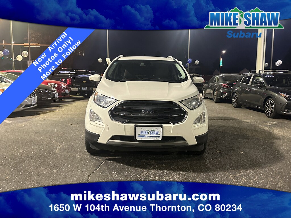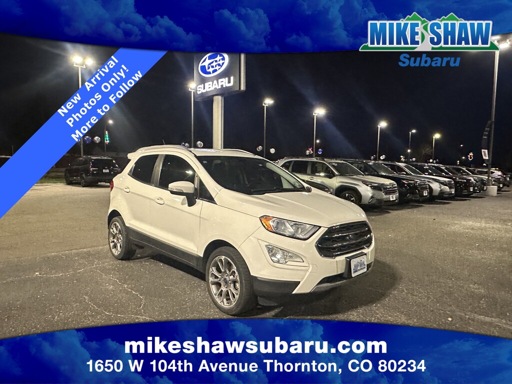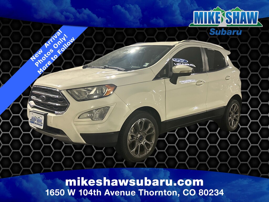 27/29 City/Highway MPG *No Accident History on Carfax*, 4-Wheel Disc Brakes, ABS brakes, Air Conditioning, Alloy wheels, AppLink/Apple CarPlay and Android Auto, Auto-dimming Rear-View mirror, Automatic temperature control, Brake assist, Compass, Delay-off headlights, Dual front impact airbags, Dual front side impact airbags, Electronic Stability Control, Emergency communication system: SYNC 3 911 Assist, Equipment Group 400A, Exterior Parking Camera Rear, Front & Rear Floor Liners, Front anti-roll bar, Front Bucket Seats, Front fog lights, Fully automatic headlights, Heated door mirrors, Heated front seats, Heated Steering Wheel, Illuminated entry, Knee airbag, Leather Shift Knob, Leather steering wheel, Navigation System, Outside temperature display, Overhead airbag, Panic alarm, Perforated Leather-Trimmed Heated Bucket Seats, Power driver seat, Power moonroof, Rain sensing wipers, Rear Parking Sensors, Rear side impact airbag, Remote keyless entry, Roof rack: rails only, Security system, Speed control, Split folding rear seat, Steering wheel mounted audio controls, SYNC 3 Communications & Entertainment System, Telescoping steering wheel, Tilt steering wheel, Titanium Cold Weather Package, Traction control, Trip computer, Turn signal indicator mirrors, Windshield Wiper De-Icer. Odometer is 18627 miles below market average!Diamond White 2018 Ford EcoSport Titanium FWD