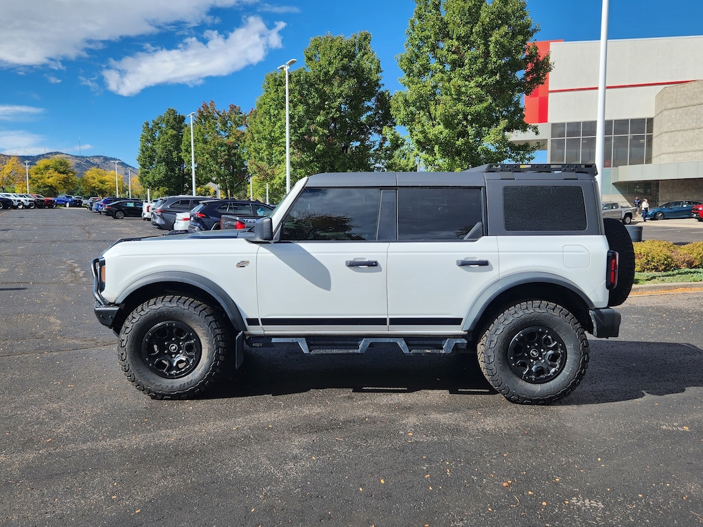Oxford White 2022 Ford Bronco Wildtrak 4WD 10-Speed Automatic 2.7L EcoBoost V6 Stevinson Toyota West is offering this 2022 Ford Bronco Wildtrak, in Oxford White and Medium Sandstone Cloth, Accident Free CarFax, Heated Seats, Rear Backup Camera, Equipment Group 352A Mid Package.Awards:
