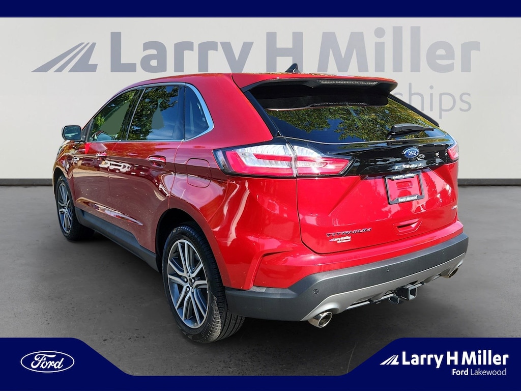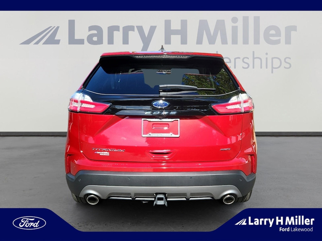 New Price! Rapid Red Metallic Tinted Clearcoat 2023 Ford Edge Titanium AWD 8-Speed Automatic EcoBoost 2.0L I4 GTDi DOHC Turbocharged, PANORAMIC VISTA ROOF, HEATED SEATS, HEATED STEERING WHEEL, MEMORY SEATS, HANDS FREE LIFTGATE, AUTO CLIMATE CONTROL, B&O PREMIUM AUDIO, BLIND SPOT INFO SYSTEM, PUSH BUTTON START, PARKING SENSORS FRONT AND REAR, REAR CAMERA, TRAILER TOW, LARGE TOUCHSCREEN, REMOTE START, DEVICE CAPABLE, HANDS FREE BLUETOOTH, GREAT MILES AND EXCELLENT CONDITION! OTHER OPTIONS INCLUDE: 3.80 Axle Ratio, 4-Wheel Disc Brakes, ABS brakes, ActiveX-Trimmed Heated Sport Bucket Seats, Air Conditioning, Auto High-beam Headlights, Auto-dimming Rear-View mirror, Automatic temperature control, Brake assist, Bumpers: body-color, Class II Trailer Tow Package, Compass, Delay-off headlights, Driver door bin, Driver vanity mirror, Dual front impact airbags, Dual front side impact airbags, Electronic Stability Control, Emergency communication system: SYNC 4 911 Assist, Equipment Group 300A, FordPass Connect, Four wheel independent suspension, Front anti-roll bar, Front Bucket Seats, Front Center Armrest w/Storage, Front dual zone A/C, Front fog lights, Front reading lights, Fully automatic headlights, Garage door transmitter, Heated door mirrors, Heated front seats, Heated steering wheel, Illuminated entry, Knee airbag, Leather steering wheel, Low tire pressure warning, Memory seat, Occupant sensing airbag, Outside temperature display, Overhead airbag, Overhead console, Panic alarm, Panoramic Vista Roof, Passenger door bin, Passenger vanity mirror, Power door mirrors, Power driver seat, Power Liftgate, Power passenger seat, Power steering, Power windows, Radio: B&O Sound System by Bang & Olufsen, Rain sensing wipers, Rear anti-roll bar, Rear reading lights, Rear seat center armrest, Rear window defroster, Rear window wiper, Remote keyless entry, Security system, SiriusXM w/360L, Speed control, Speed-Sensitive Wipers, Split folding rear seat, Spoiler, Steering wheel mounted audio controls, SYNC 4A w/Enhanced Voice Recognition, Tachometer, Telescoping steering wheel, Tilt steering wheel, Traction control, Trip computer, Turn signal indicator mirrors, Variably intermittent wipers, Wheels: 20 Bright-Machined Aluminum.