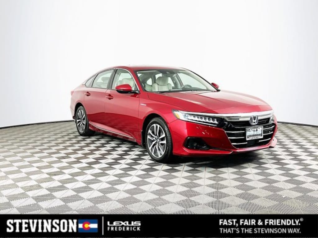 Stevinson Lexus of Frederick is offering for sale this 2022 Honda Accord Hybrid EX-L.Odometer is 13197 miles below market average! Radiant Red Metallic Clean CARFAX. Alloy wheels, Apple CarPlay/Android Auto, Blind Spot Information (BSI) System warning, Electronic Stability Control, Emergency communication system: HondaLink, Exterior Parking Camera Rear, Forward collision: Collision Mitigation Braking System (CMBS) + FCW mitigation, Heated Front Bucket Seats, Lane Departure Warning System, Perforated Leather Seat Trim, Power moonroof, Radio: 450-Watt HD Premium Audio System. CARFAX One-Owner. 48/47 City/Highway MPG