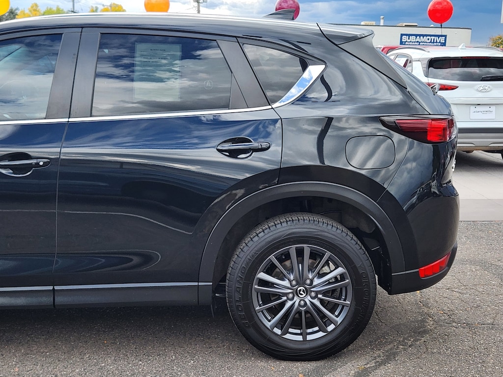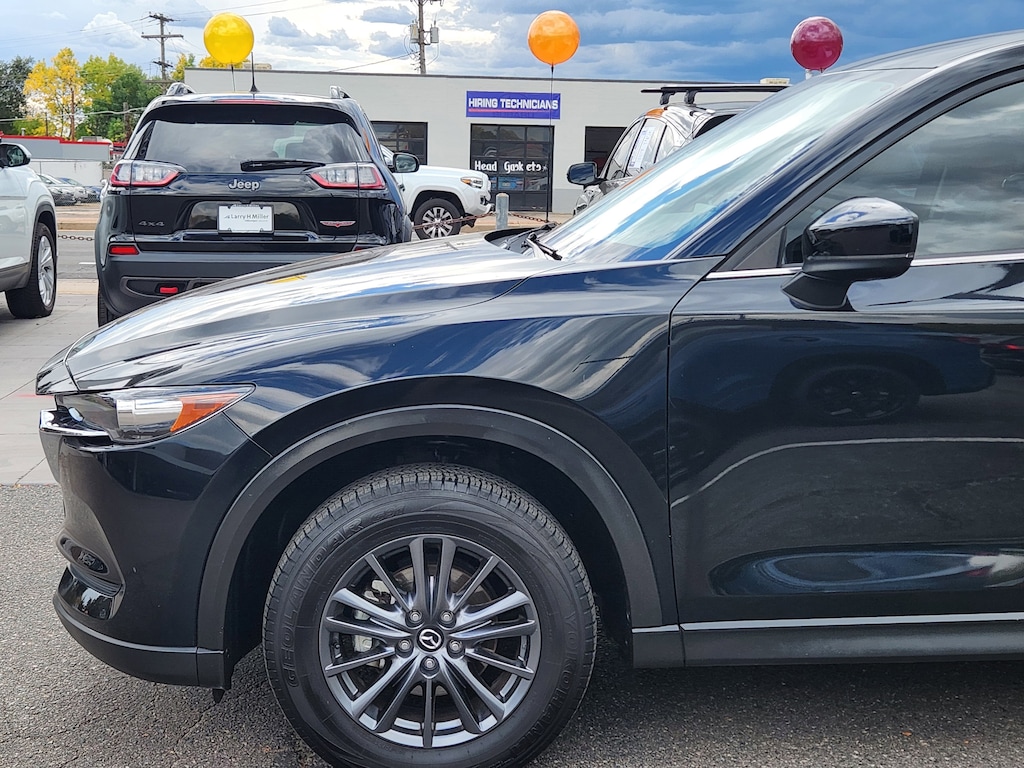 CX-5 Touring, 4D Sport Utility, SKYACTIV® 2.5L 4-Cylinder DOHC 16V, 6-Speed Automatic, AWD, Jet Black Mica, Black w/Leather Seat Trim, Bose 10-Speaker Premium Audio Sound System, Heated Front Bucket Seats, Rain sensing wipers, 4-Wheel Disc Brakes, 4.624 Axle Ratio, 6 Speakers, ABS brakes, Air Conditioning, Alloy wheels, AM/FM radio, AppLink/Apple CarPlay and Android Auto, Auto High-beam Headlights, Automatic temperature control, Brake assist, Bumpers: body-color, Delay-off headlights, Driver door bin, Driver vanity mirror, Dual front impact airbags, Dual front side impact airbags, Electronic Stability Control, Emergency communication system: MAZDA CONNECT, Exterior Parking Camera Rear, Four wheel independent suspension, Front anti-roll bar, Front Bucket Seats, Front Center Armrest, Front dual zone A/C, Front reading lights, Fully automatic headlights, Heated front seats, Illuminated entry, Leather Seat Trim, Leather Shift Knob, Leatherette Seat Trim, Low tire pressure warning, Occupant sensing airbag, Outside temperature display, Overhead airbag, Overhead console, Panic alarm, Passenger door bin, Passenger vanity mirror, Power door mirrors, Power driver seat, Power steering, Power windows, Radio data system, Radio: AM/FM/HD Audio System, Rear anti-roll bar, Rear reading lights, Rear seat center armrest, Rear window defroster, Rear window wiper, Remote keyless entry, Speed control, Speed-sensing steering, Split folding rear seat, Spoiler, Steering wheel mounted audio controls, Tachometer, Telescoping steering wheel, Tilt steering wheel, Traction control, Trip computer, Turn signal indicator mirrors, Variably intermittent wipers, and Wheels: 17 x 7J Aluminum Alloy. Odometer is 11666 miles below market average! 24/30 City/Highway MPG