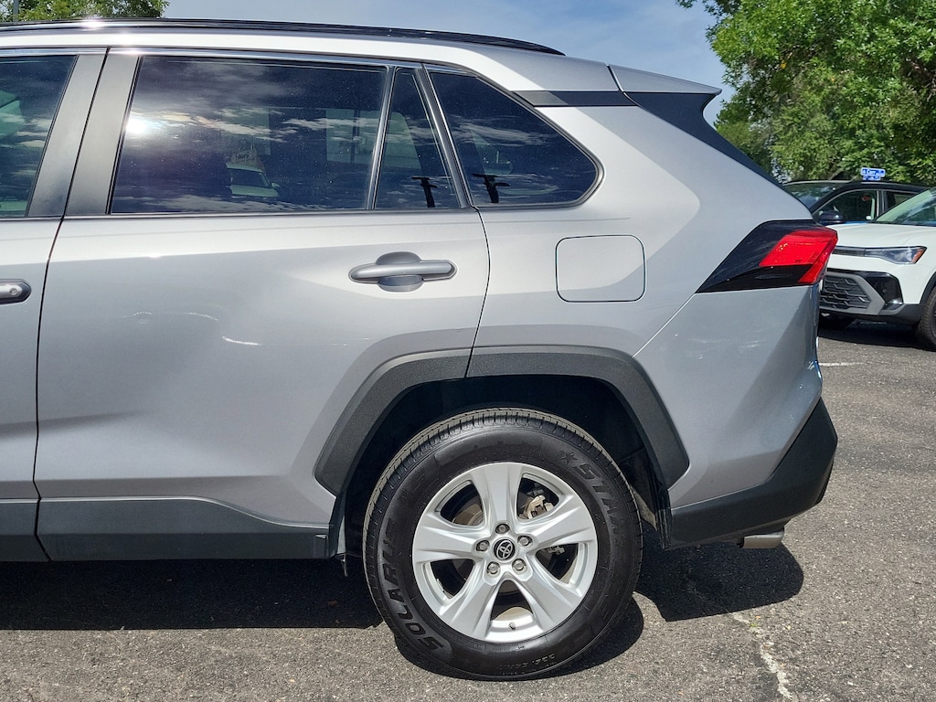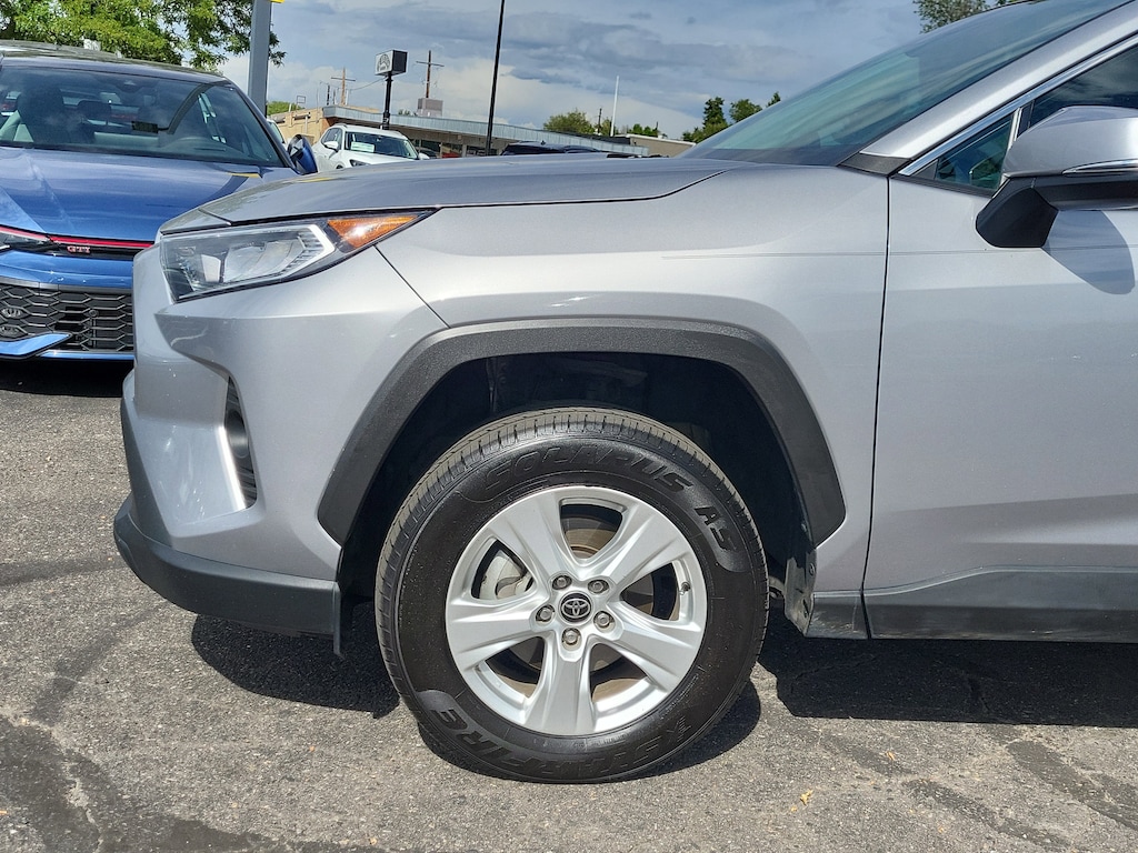RAV4 XLE, 4D Sport Utility, 2.5L 4-Cylinder DOHC Dual VVT-i, 8-Speed Automatic, FWD, Silver Sky Metallic, Ash w/Fabric Seat Trim, Active Cruise Control, Apple CarPlay/Android Auto, Auto High-beam Headlights, Automatic temperature control, Front Door Smart Key System w/Push Button Start, Front dual zone A/C, Fully automatic headlights, Heated door mirrors, Turn signal indicator mirrors, 4-Wheel Disc Brakes, 6 Speakers, ABS brakes, Air Conditioning, Alloy wheels, AM/FM radio: SiriusXM, AM/FM Stereo, Axle Ratio: 3.177, Brake assist, Bumpers: body-color, Delay-off headlights, Driver door bin, Driver vanity mirror, Dual front impact airbags, Dual front side impact airbags, Electronic Stability Control, Emergency communication system, Exterior Parking Camera Rear, Fabric Seat Trim, Four wheel independent suspension, Front anti-roll bar, Front Bucket Seats, Front Center Armrest, Front fog lights, Front reading lights, Illuminated entry, Knee airbag, Low tire pressure warning, Occupant sensing airbag, Outside temperature display, Overhead airbag, Overhead console, Panic alarm, Passenger door bin, Passenger vanity mirror, Power door mirrors, Power driver seat, Power steering, Power windows, Radio data system, Rear anti-roll bar, Rear seat center armrest, Rear window defroster, Rear window wiper, Remote keyless entry, Roof rack: rails only, Speed control, Speed-sensing steering, Split folding rear seat, Spoiler, Steering wheel mounted audio controls, Tachometer, Telescoping steering wheel, Tilt steering wheel, Traction control, Trip computer, Variably intermittent wipers, and Wheels: 17 5-Spoke Silver Alloy. Odometer is 27632 miles below market average! 28/35 City/Highway MPG